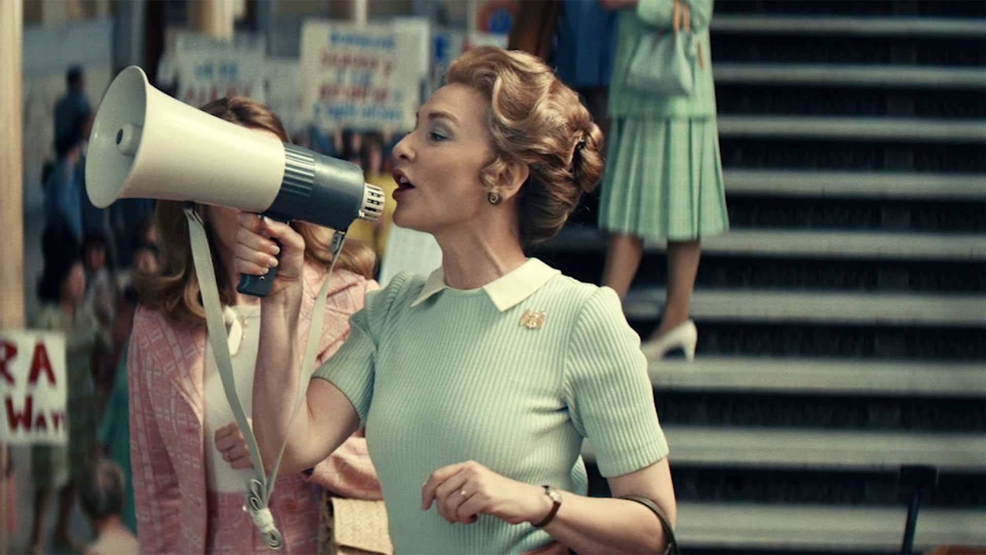 Mrs. America features an all-star team in front of and behind the cameras. Two-time Academy Award and Golden Globe Award winner Cate Blanchett headlines as Phyllis Schlafly, leading a stellar cast portraying some of the most iconic women of the era, including Emmy Award nominated Rose Byrne as Gloria Steinem, Emmy Award winner Margo Martindale as Bella Abzug, Emmy and Golden Globe Award winner Uzo Aduba as Shirley Chisholm, Emmy Award nominated Elizabeth Banks as Jill Ruckelshaus, and Emmy and Golden Globe Award winner Tracey Ullman as Betty Friedan. The cast also boasts Emmy and Golden Globe Award winner Sarah Paulson, Emmy Award nominated John Slattery, Emmy Award nominated Jeanne Tripplehorn, Ari Graynor, Melanie Lynskey and Kayli Carter.